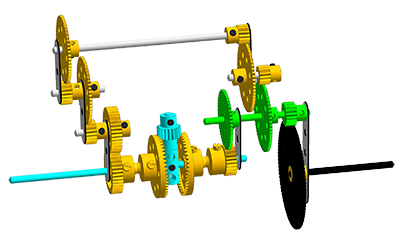 Meccano Coil Winding Machine Four Planet Orrery Special gear ratios for astronomical purposes Sijnja Astronomical Clock Bevel Gear Cutting Machine Meccano Heidelberg Platen Press Meccano Rubik's Shrine Meccano Peacock Clock with a rack snail striking mechanism Cyclographs Mark 4 and 5 by the brothers Tony and Maurice Rednall Arnfield Mantel Clock with a clock striking mechanism Clock Striking Mechanism for the Arnfield Mantel Clock (available as ModelPlan 178) Sinclair Harding Navigation Clock Three planet orrery Clock striking mechanism by Stephen Jeavons Synchromesh Gearbox Meccano mechanisms Dr. Ir. A. H. Boerdijk's Super meccanograph (available as model plan 182) Philips Television Demonstration Machines (approx. 1964) interval mechanism for the minutes hand XY drawing machine Harmonograph Modern Versatile Harmonograph